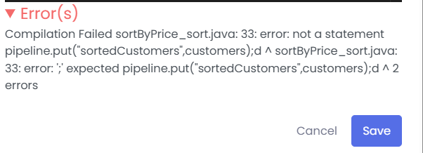 We have sorted the customers by their price in ascending order and put the final list in the pipeline for the key “sortedCustomers”.