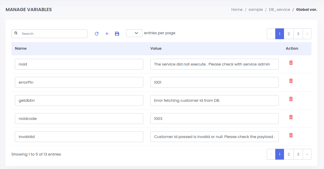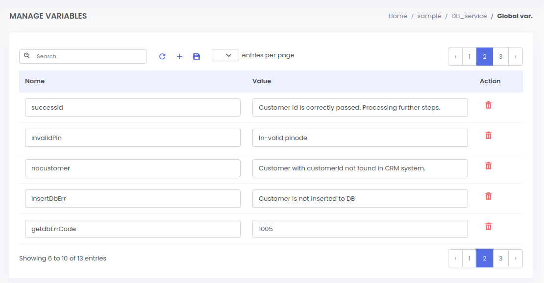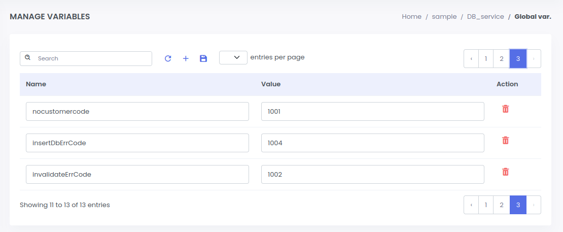 a. Click on 4th icon to open global variable page