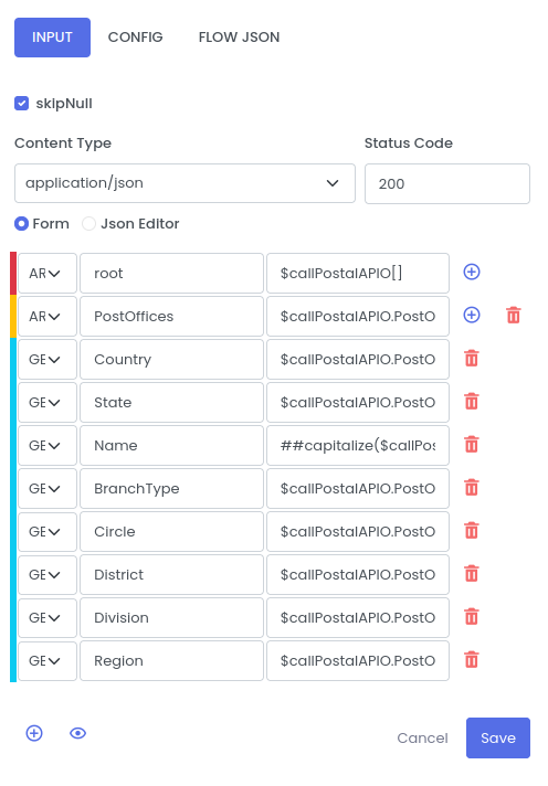 Drag REST connector to make India Post REST API call to get postal details based on PIN code.