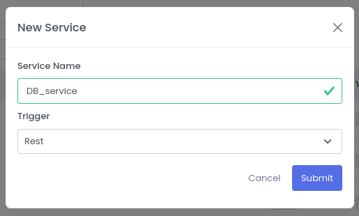 Click on + sign to create a new service. Fill the Service Name and select the REST as Trigger and click Submit button