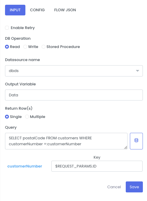 | Output Variable | Stores output of connections operations | callPostalAPIO |