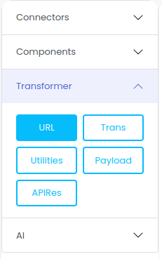 Drag and drop URL transformer to the canvas using left click to validate the URL.