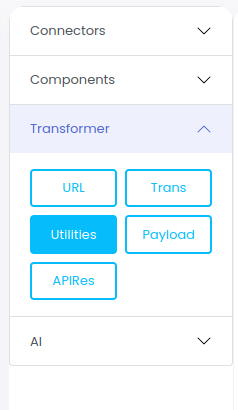 Drag and drop the Utilities transformer to the canvas using left click to add End logger for your service.